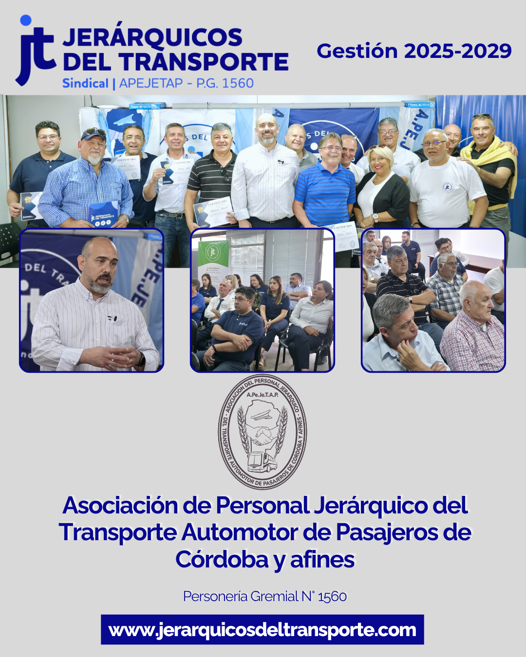 Nacimos desde la lucha sindical y la vocación de servicio de los Inspectores y Supervisores de colectivos. Representamos a los trabajadores Jerárquicos del Transporte, construyendo un sistema integral que une al Sindicato (APEJETAP), la Obra Social (OSPJTAP) y la Mutual (AMPJTAP). Desde nuestras raíces gremiales en Córdoba hasta nuestra proyección nacional, avanzamos con compromiso, profesionalismo y visión de futuro, para brindar cobertura, contención y bienestar a quienes confían en nosotros.